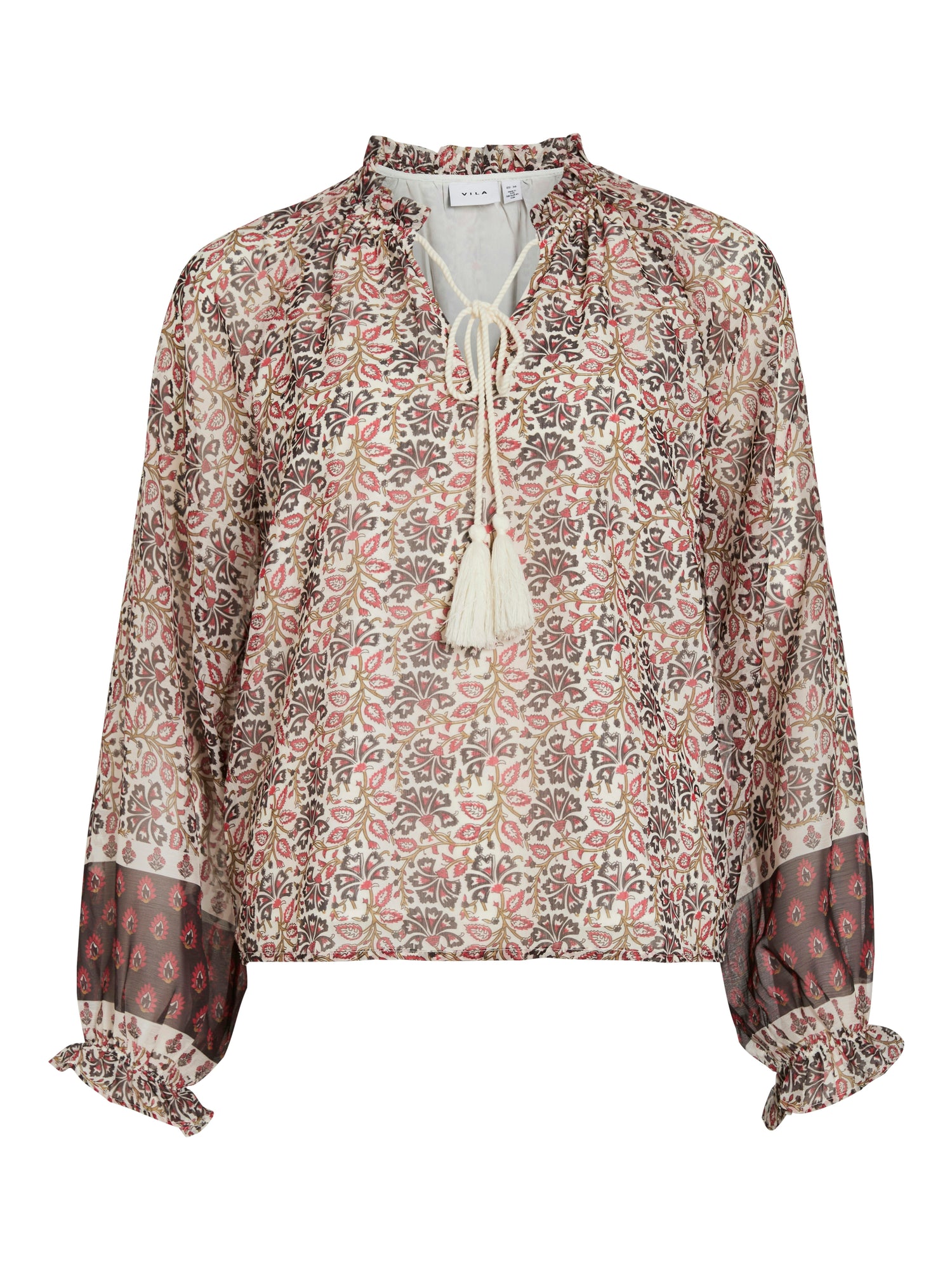 TOP/ CAMISA CUELLO MAO CON CIERRE DE CORDÓN , MANGAS LARGAS , PUÑO CON GOMA . CORTE REGULAR.