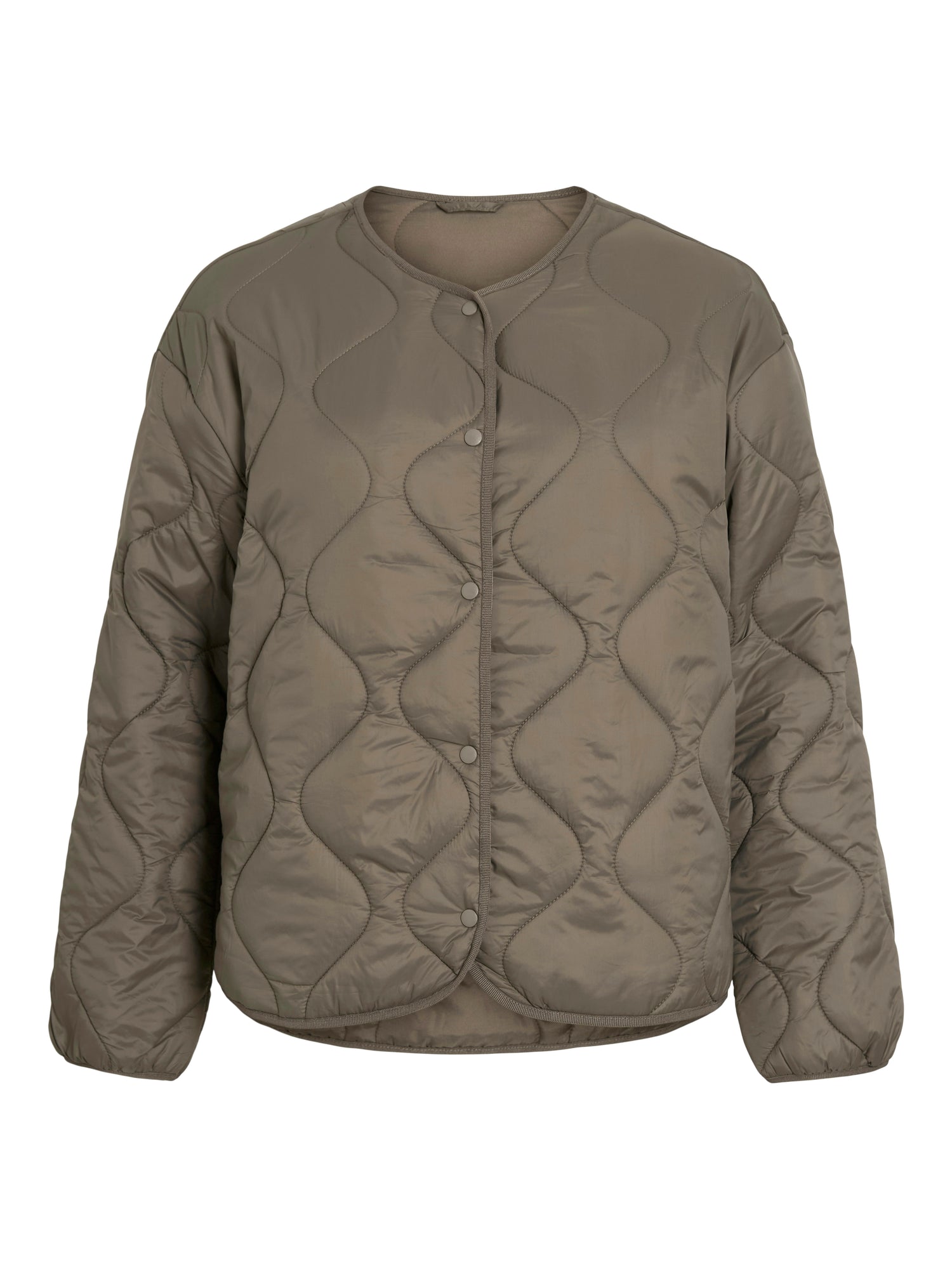 CHAQUETA ACOLCHADA , CIERRE CON BOTONES DE CORCHETES, CUELLO REDONDO,BOLSILLOS LATERALES, CORTE REGULAR, DOS COLORES DISPONIBLES , TOPO Y VERDE