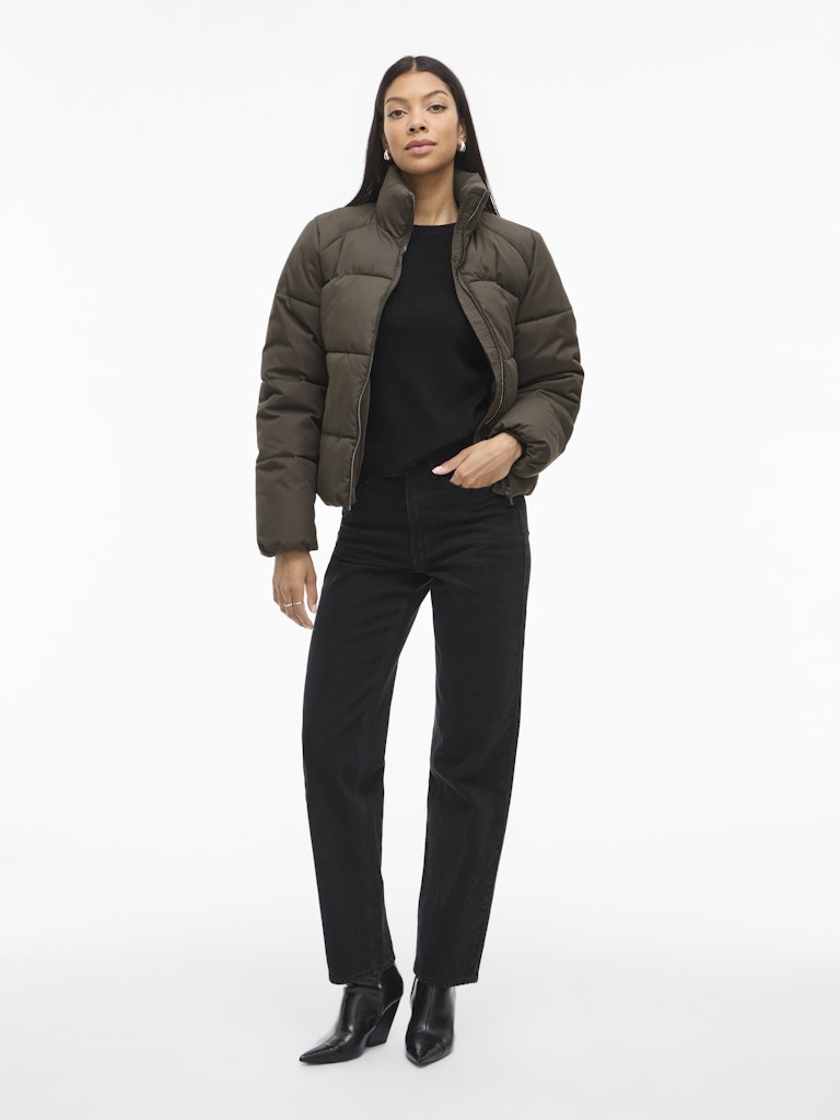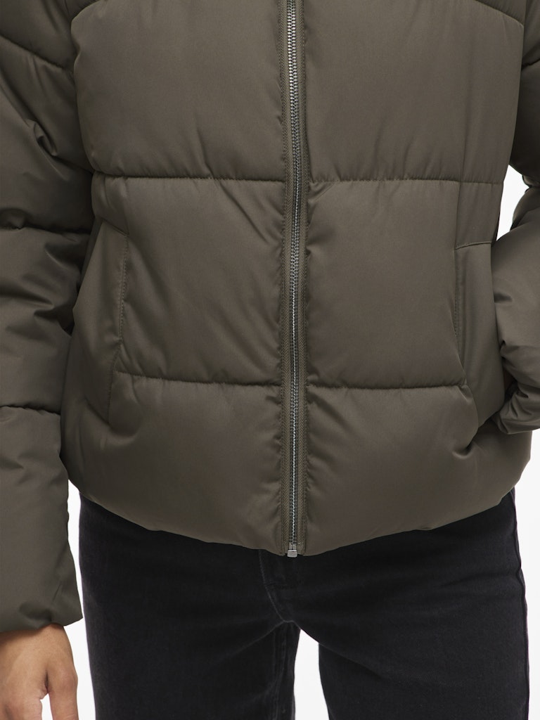 CHAQUETA TIPO PUFFER CLÁSICA , CUELLO ALTO, CIERRE DE CREMALLERA, BOLSILLOS LATERALES, PUÑOS ELÁSTICOS, CORTE REGULAR.