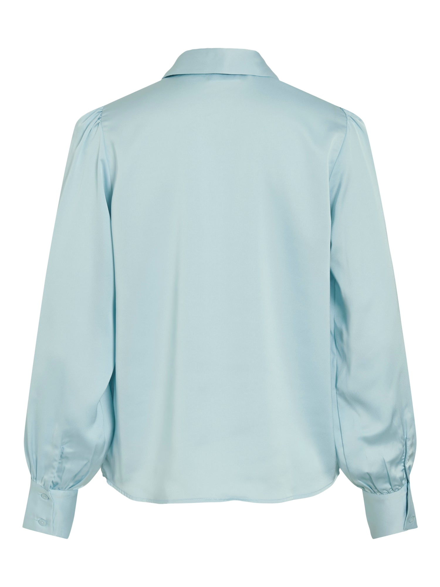 CAMISA ELEGANTE DE MANGAS LARGAS, CIERRE FRONTAL CON BOTONES, LAZO DESMONTABLE, PUÑOS ABOTONADOS, TEJIDO BRILLANTE, CORTE REGULAR .