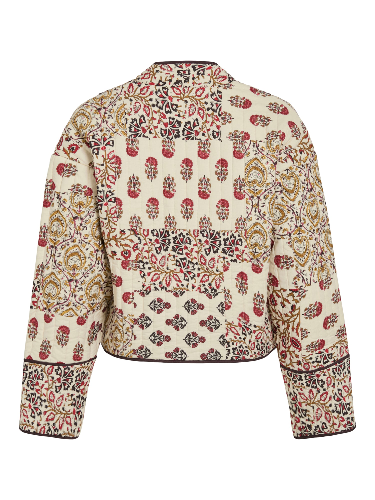 CHAQUETA ACOLCHADA , CORTE TIPO KIMONO, CUELLO EN V CIERRE CON UN CORDÓN EN LA PARTE CENTRAL,.